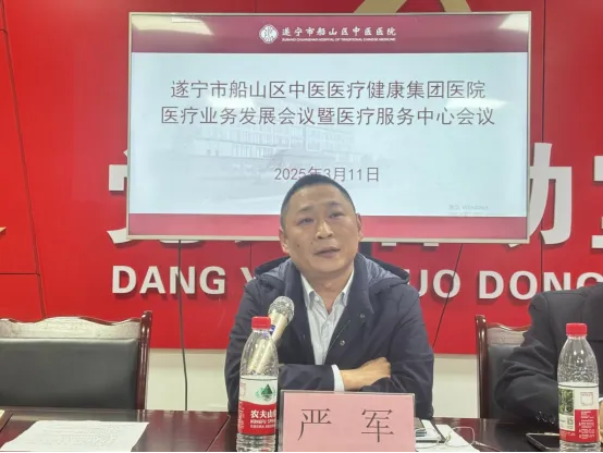 为进一步加强集团医院建设,推进医院事业高质量发展,3月11日,遂宁市船山区中医医疗健康集团医院召开2025年医疗业务发展会议,围绕"强根基、提质量"主题,系统谋划中医药服务能力提升路径。船山区中医医院工会主席杨鸣凤主持会议。医院领导班子、中层干部、临床骨干、特邀专家参加会议。