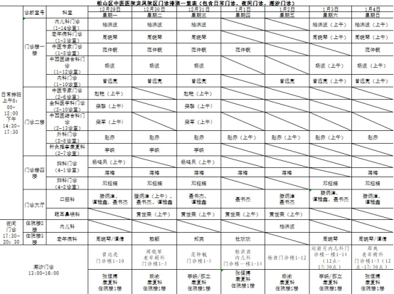 - 便民服务丨船山区中医医院龙凤院区12月29日-1月4日门诊排班表